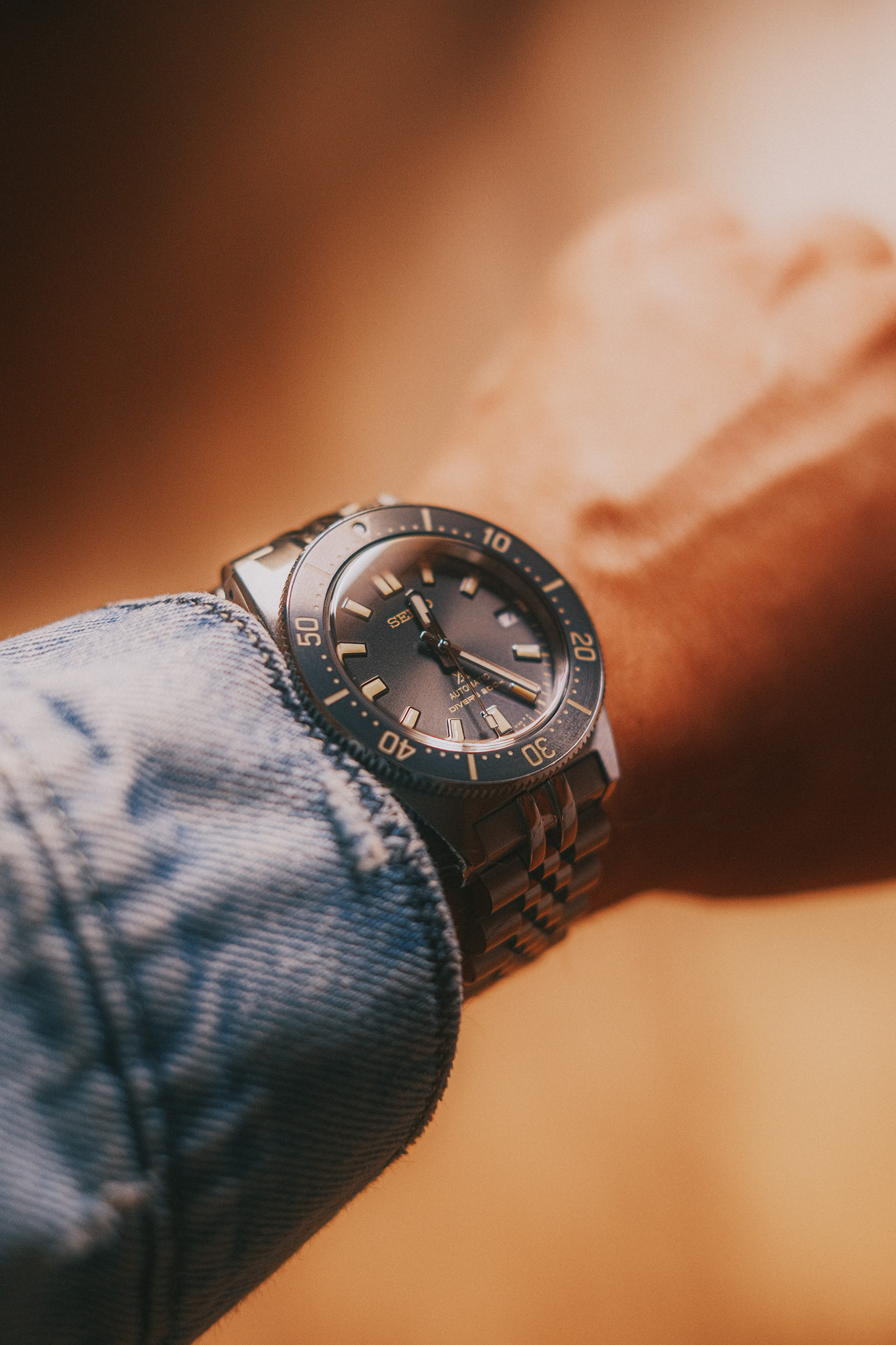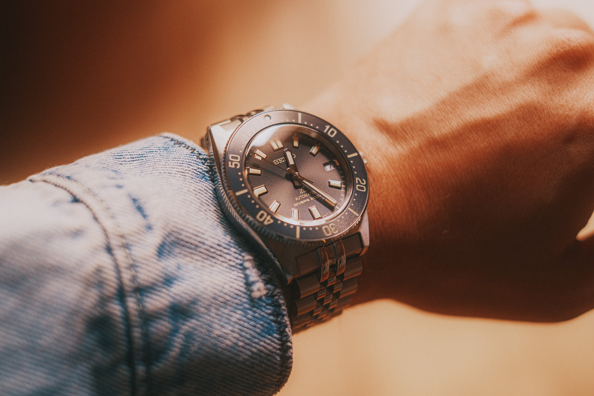 That’s how I ended up with this one—the Seiko 62MAS reissue, reference SPB239J1. It’s an automatic (caliber 6R35 with a 70-hour power reserve) and carries clear vintage cues. What really won me over were the details: the creamy patina on the markers and the dial, which is surprisingly complex. At first glance it can look black, but under different lighting it shifts into this moody grey-brown with a textured surface that feels alive.